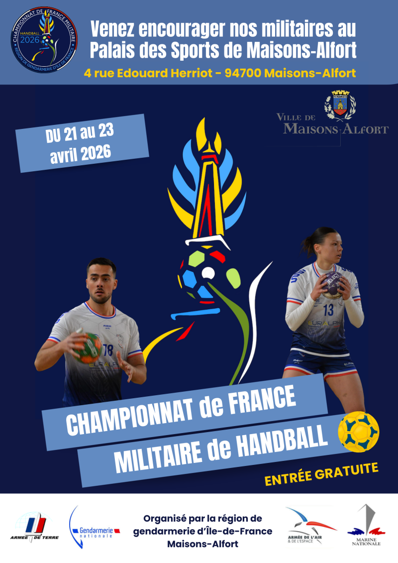 Préparez-vous à vibrer au rythme du Championnat de France Militaire de Handball du 21 au 23 avril 2026 - Entrée gratuite.